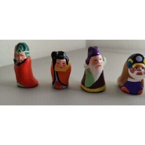 VTG Figurines Gods Good Luck Six Lucky 2” Clay Hand Painted RARE Chinese Clay