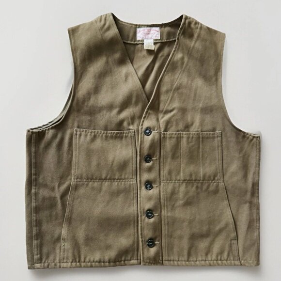 VTG Filson USA Vest Men Size 46 Hunting Button Up Style 820 Tan Cotton Moleskin