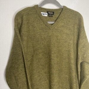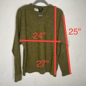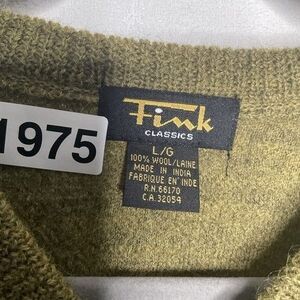 Vintage Fink 100% Lambs Wool Long Sleeve V-Neck Sweater Men Size Large Olive