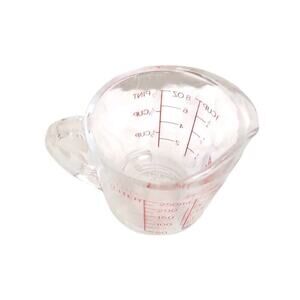 VTG Fire King 1 Cup 1/4 Liter Clear Glass Measuring Cup Red Graphics 496 Metric