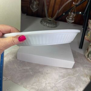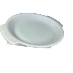 VTG Fire-King 9” ribbed pie plate. Clearly stamped on bottom. The first picture the pie plate is larger than original. AI doesn’t understand what 9” is.