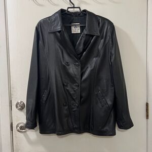 VTG Firenze by Vera Pelle Italy Black Double Breasted Leather Jacket Sz LG/XL