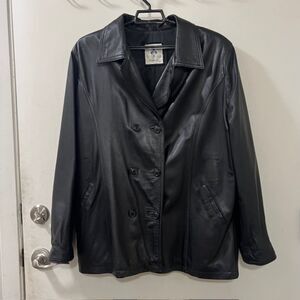 VTG Firenze by Vera Pelle Italy Black Double Breasted LS Leather Jacket Sz Large/XLarge