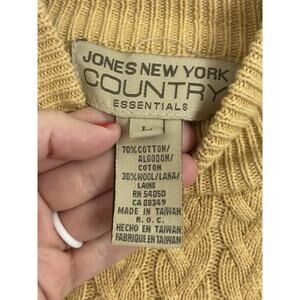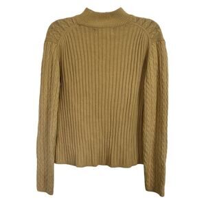 VTG Fisherman Cable Knit Wool Blend Boxy Mock Neck Sweater Size Large Yellow