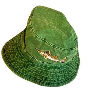VTG Fishing Bucket Hat SNOOK Fish Embroidered 100% Cotton Faded Green Headwear M