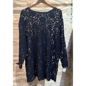 VTG Fishnet 24W Crochet Pullover Tunic Floral Festival CottageCore Whimsical