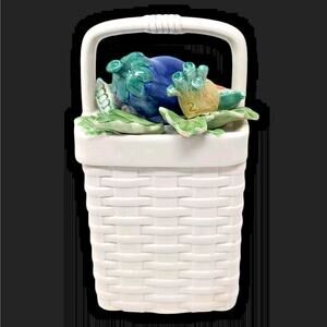 VTG Fitz & Floyd Canister Kitchen Harvest Basket Weave Colorful Vegetables READ