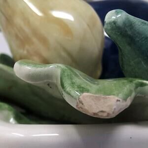Good preowned condition. There are some small chips at the tips of the vegetables, but still quite beautiful. Please view in close up photos.