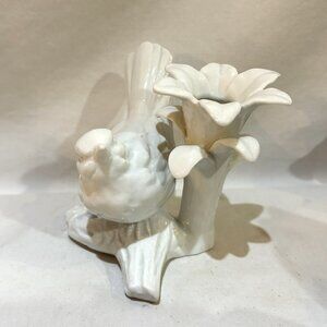 VTG Fitz and Floyd White Porcelain Bird and Flower Candle Holder Made in Japan