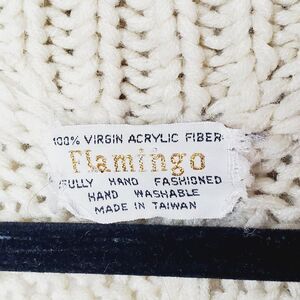 VTG Flamingo Womens Knit Poncho Aztec Fringe Sweater BOHO Indie Cape Free Size