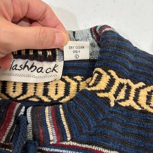 VTG Flashback Blue Aztec Blazer Jacket Western Cotton Striped Tapestry Women M