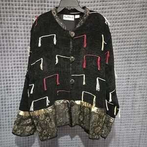 VTG Flashback Tassel Jacket Blazer SzXL Button Asian Artsy Punk Rock Goth Witchy