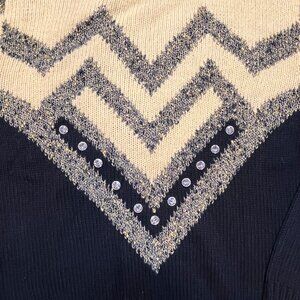 Cute, retro sweater in black and cream with rhinestone detailing. Very St. Elmos Fire, Sixteen Candles, Breakfast Club era.