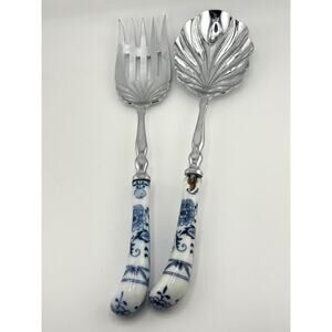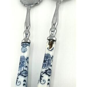 VTG Floraine AE Lewis Sheffield Silverware Serving Large Spoon Fork Porcelain