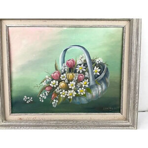 VTG Floral Arrangements Oil Painting Canvas Wall Artwork Signed '01 Framed