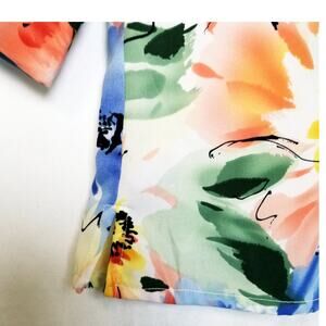 VINTAGE - Floral Blouse Joanna Petite Button Up Shirt Women's Size - PM; Material - 100% Polyester; Care - Machine Wash Cold Delicate;; Made in China; Women's Petite Button Up Blouse, 3/4 Slit Sleeve, 2 inch side seam slit at hem, Pointed Collar, Yoke Back Top;
