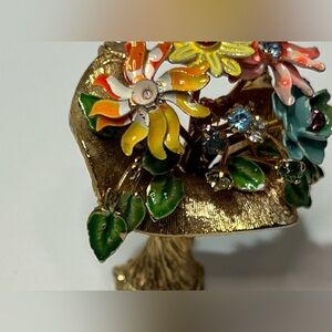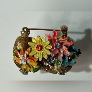 VTG Floral Bouquet Gold Tone Colorful Rhinestones Brooch Pin