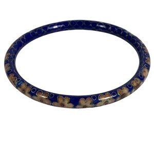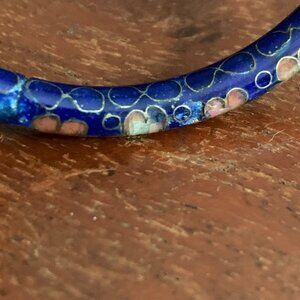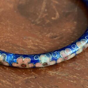 VTG Floral Cloisonne Enamel Bangle Bracelet Blue Pink Flowers Women Jewelry FLAW