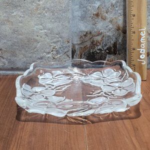 VTG Floral Etched Glass Dish Platter Flower Fancies