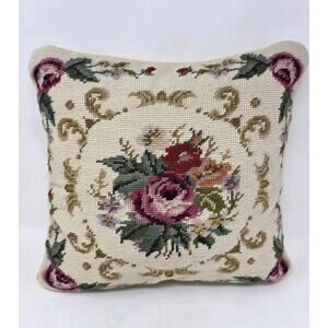Approx 14 x 14 Floral Needlepoint Tapestry style front and velvet back Zipper on back. Nice clean condition