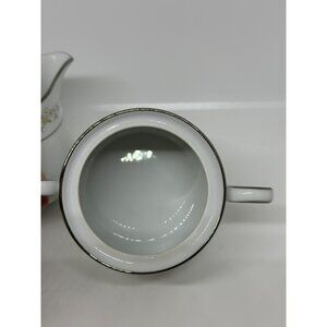 TAGS: #MidCenturyModern, #PorcelainDecor, #TeaTime, #VintageStyle, #FloralSet, #VintagePorcelain, #FloralKitchenware, #SilverTrim, #CreamerSugarSet, #Collectible TEMP1