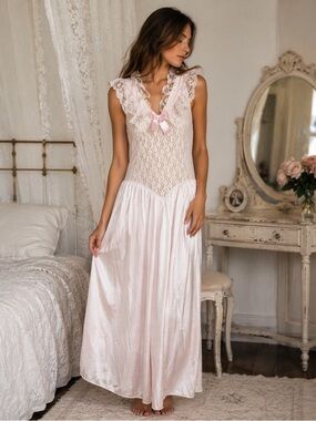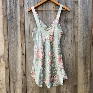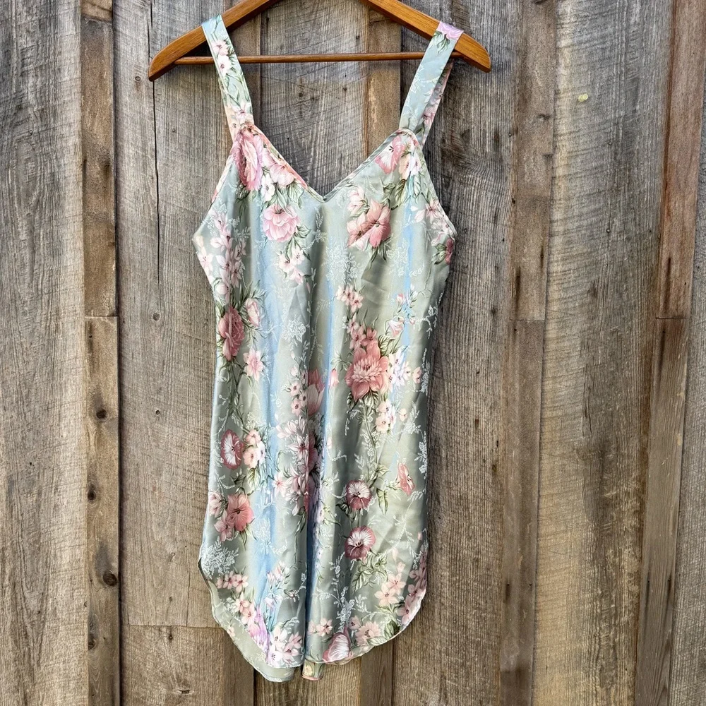 VTG Floral Satin Slip Dress in Sage Green and Blush Pink