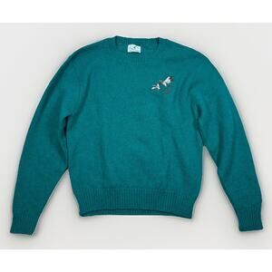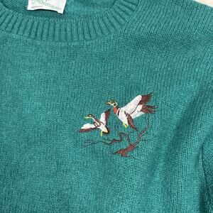 VTG Flying Scotsman Sweater Women;s Size L Green Wool Embroidered Ducks USA 90s