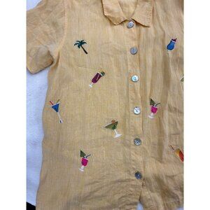 VTG Focus Medium- Yellow 100% Linen Button-Up Shirt W/ Tropical Embroidery