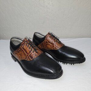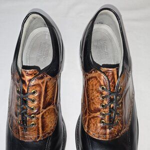 Vintage FootJoy Classics Dry Premiere Mens Golf Shoes Black Leather Brown Croc Embossed Saddle Style
