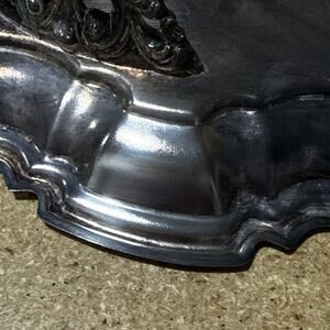 VTG Footed Silverplate Serving Tray Victorian Scroll & Cartouche Design Unmarked