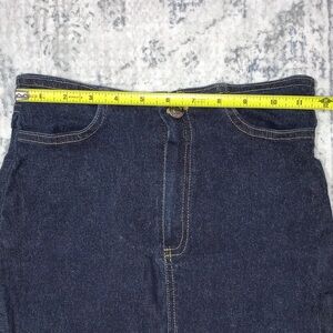 Stylish dark denim midi skirt with front slit. Perfect for casual outings.