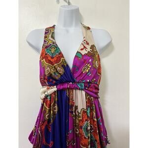 VTG Forever 21 Satin Babydoll Handkerchief Mini Dress Size M Colorful Y2K 2000s