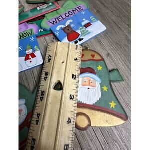 VTG Forever Beautiful Christmas Ornaments Wooden Bells Rustic Santa Snowman 6 pc
