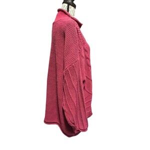 The VTG Fortelli Chuncky 3D Pink Turtle Neck Sweater is a vintage-inspired piece perfect for the career coastal grandma in your life. This cozy cable-knit sweater features a mock neck and oversized fit, making it ideal for casual or business occasions. The 3D knit accents add a fun and unique touch to this solid pink sweater, which is machine washable for easy care. Perfect for the fall, winter, and spring seasons, this heavyweight sweater also offers stretch and moisture-wicking properties for added comfort. The relaxed fit and retro 90s theme make it a standout addition to any wardrobe.