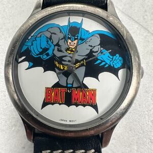 VTG Fossil Batman Watch 32mm Round Silver Tone Black Band BA-6307 New Battery