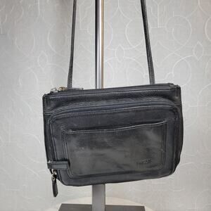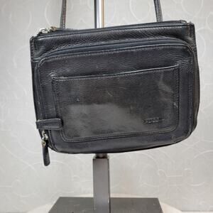 Fossil Black Leather Crossover Bag Purse 9"x7" Black Multi Pockets Card Slots