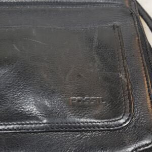 VTG Fossil Black Pebbled Leather Purse 9"x7" Black Pockets Card Slots Crossbody