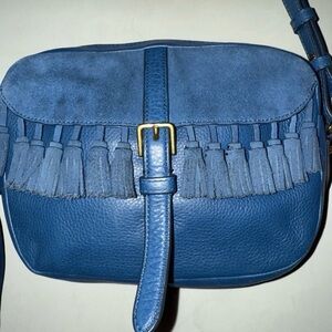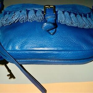 VTG Fossil Crossbody Bag Women's Kendall Blue Leather Western Boho Tassels