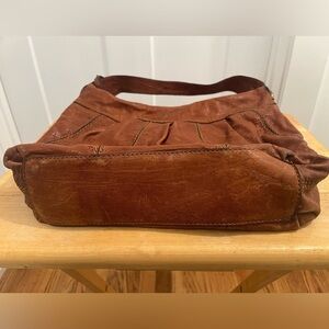 VTG Fossil Hobo Bag Brown Leather Brass Hardware Zip Closure