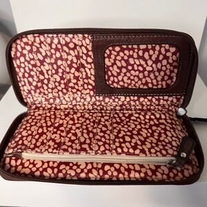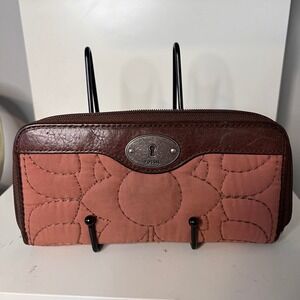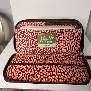 Keywords: Fossil wallet, leather wallet, zip around wallet, clutch wallet, organizer wallet, floral wallet, brown wallet, womens wallet, designer wallet, Fossil purse, coin purse, card holder, key-per, vintage fossil