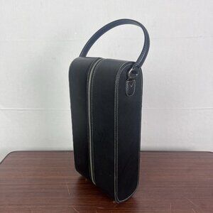 VTG Fossil Leather 2 Bottles Wine Travel Bag Case Leather Purse Handle Zipper