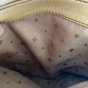 VTG Fossil Tan Leather Canvas Geometric Patterned Crossbody Bag Boho Retro NWOT