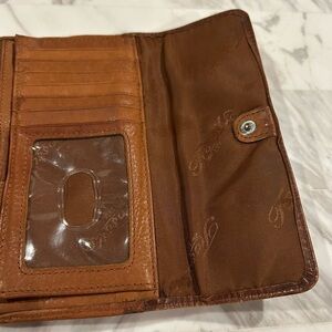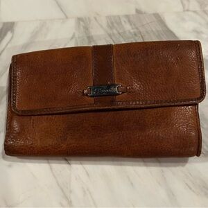 VTG Fossil Wallet Brown Leather Trifold Snap Close Checkbook 4” x 7”