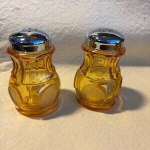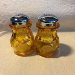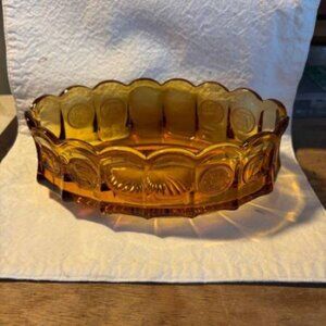 VTG Fostoria Amber Eagle & Torch Coin Glass Covered Compote, Oval Bowl, and Salt and Pepper Shakers. This set of 4 vintage Fostoria pieces are in excellent new condition. $70 for the set of 4. The Compote measures 7" x 4"H, oval bowl is 9" x 5.5" x 3.5" H and the salt and pepper shakers are 3.5" H. Non-smoking home.