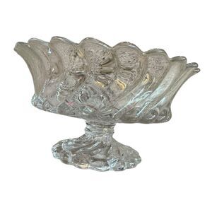 Elevate your table setting with the vintage Fostoria Colony 2412 Swirl Glass Fruit Bowl, a stunning piece that exudes the elegance of Art Deco design. Crafted in the United States during the early 20th century, this 10 1/2" footed bowl features a captivating swirl pattern, seamlessly blending functionality with decorative appeal. Its clear glass material, glossy finish, and scalloped edges make it a charming addition to any occasion.