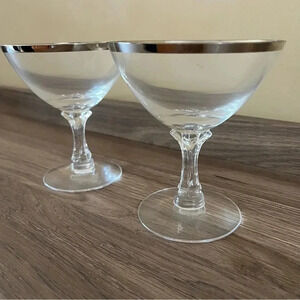 VTG Fostoria Crystal Silver Rimmed Wine Martini Glass Set of 2