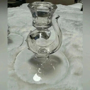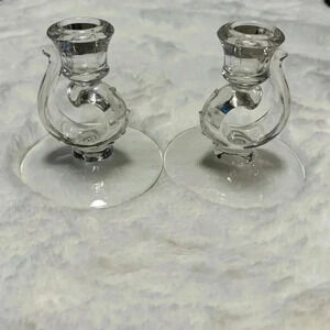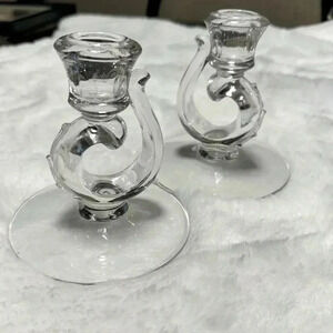 VTG Fostoria Depression Glass Candlestick Holders Beaded Glam Cottagecore EUC