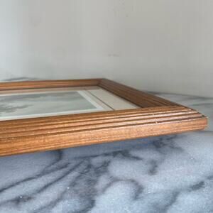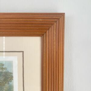 The image is reproduced on a paper art print and is matted and framed in a honey tone wood frame.