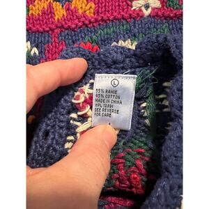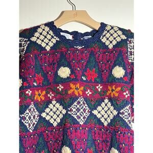 VTG Frankenmuth Woolen Mill Hand Knit Cotton Ramie Patchwork Pullover Sweater L