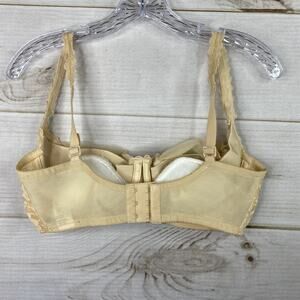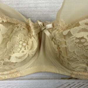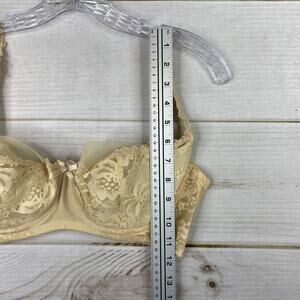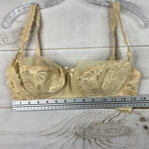 VTG Fredericks Of Hollywood Bra 34DD Beige Lace Underwire Bow Balconette Padded